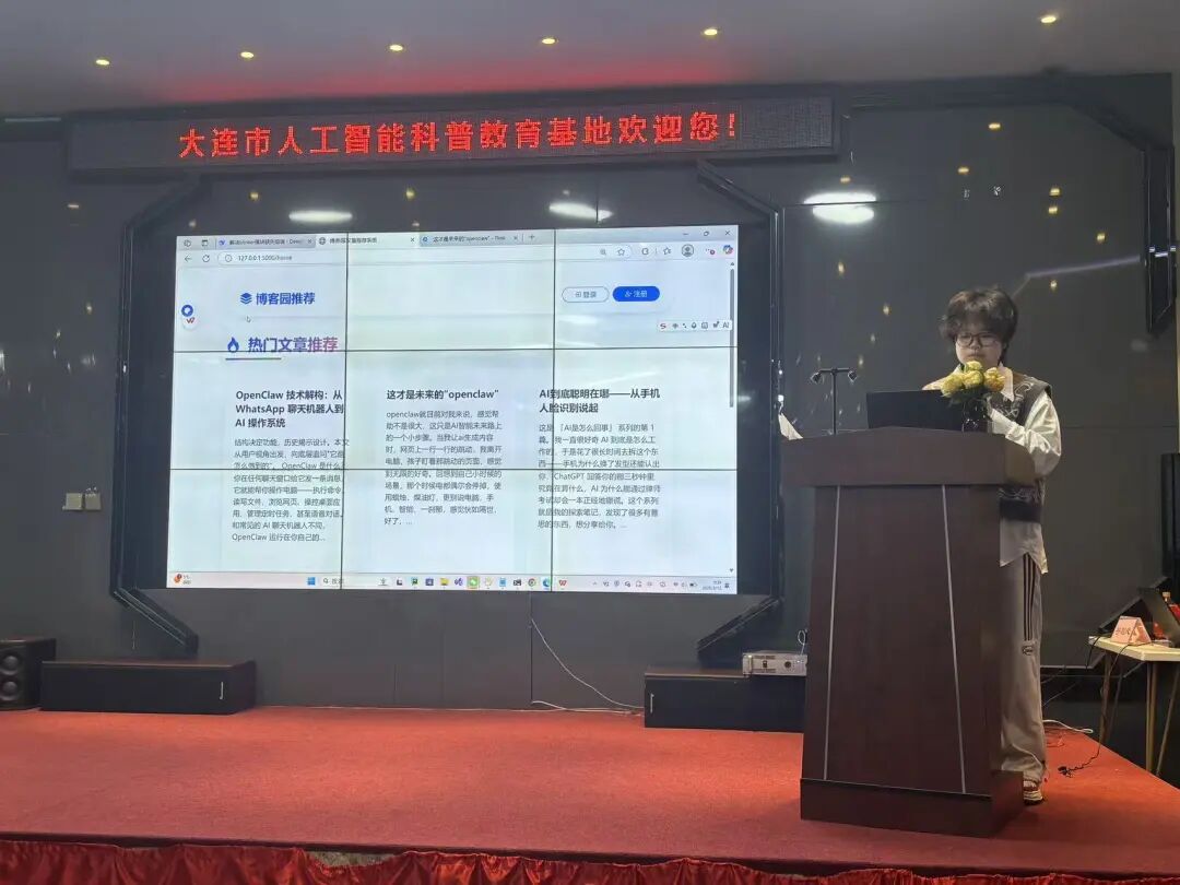 3月16日上午9时,师生们在路演厅准时集合。计算机学会副秘书长张健上台致欢迎辞。她从人工智能发展趋势切入,鼓励同学们保持好奇、勇于创新,在科技变革中勇立潮头。