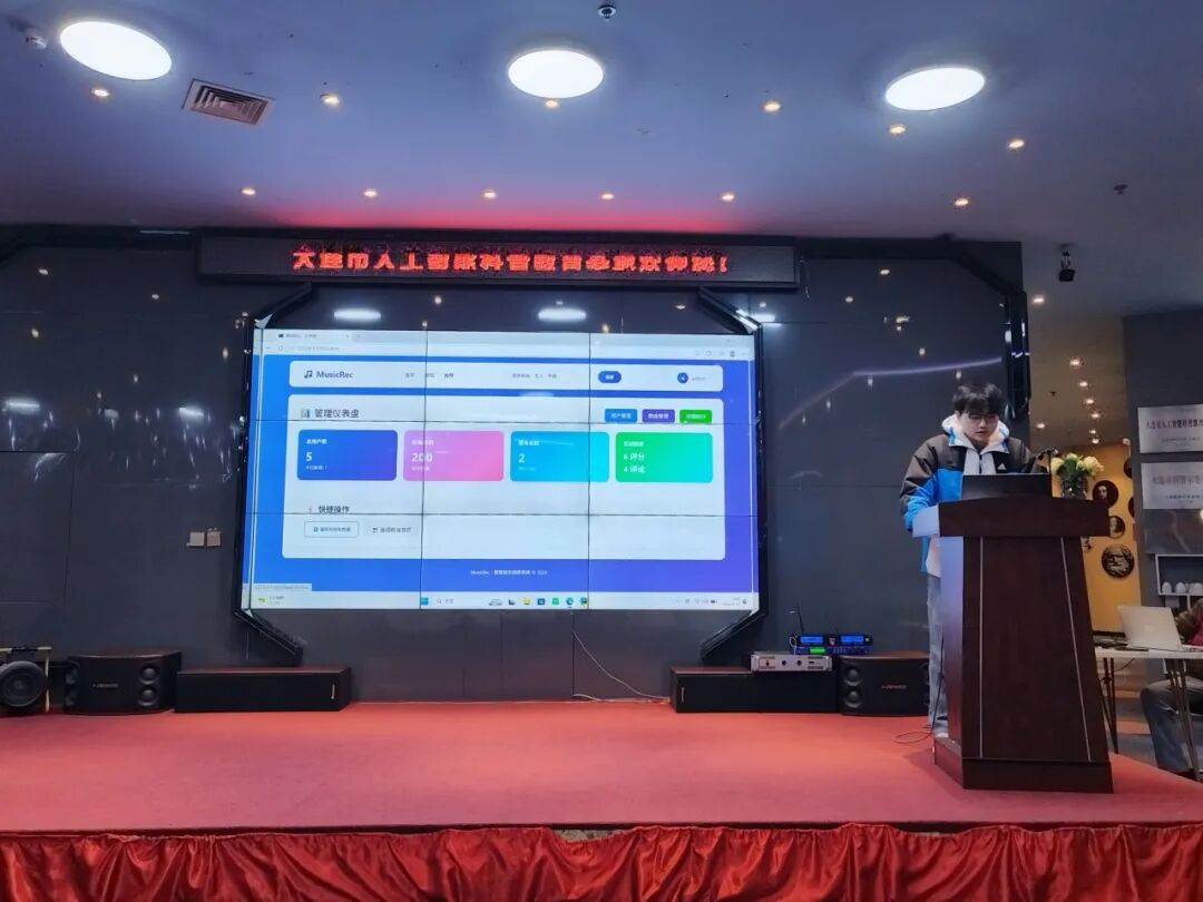 参观结束后,师生们返回路演厅,举行大数据行业应用综合开发实践课程结课仪式。同学们依次上台,逐一展示自己独立完成的项目作品,从设计思路、项目功能到技术实现进行详细讲解,真诚分享课程学习中的收获、成长与实践心得。