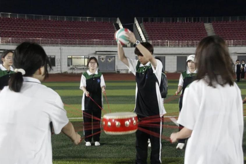 一鼓一心,同起同落。同学们在一次次弹起落下的节奏中,感受集体的力量,也真正体会到了“同心”的涵义。